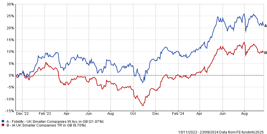…another good example is Fidelity UK Smaller Companies – 24 months from Nov 22 to Sept 2024.