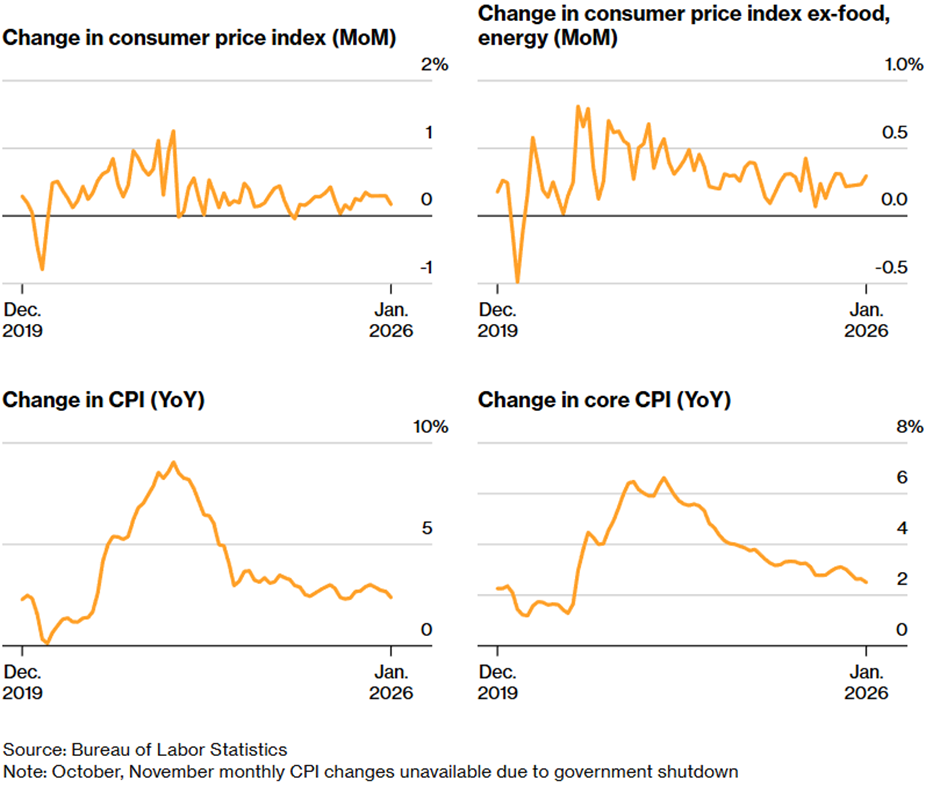 Later in the week, inflation data provided the counterbalance. January CPI was milder than feared. Headline CPI rose 0.2%, and core CPI was 0.3%, with the year-on-year core rate easing to 2.5%, the lowest since 2021.