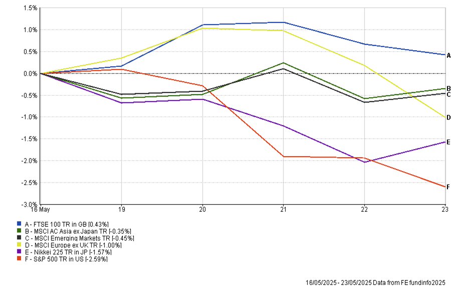 Last week’s modest pullback in most equity markets wasn’t unexpected. After a sharp and enthusiastic rebound from the initial tariff-driven sell-off, investors were always likely to pause to reassess. The catalyst wasn’t a single event but a convergence of (again) US factors: a renewed rise in bond yields following Congress’s passage of Trump’s ‘Big Beautiful Bill’ and the reappearance of trade tensions, this time with the EU firmly in the crosshairs.